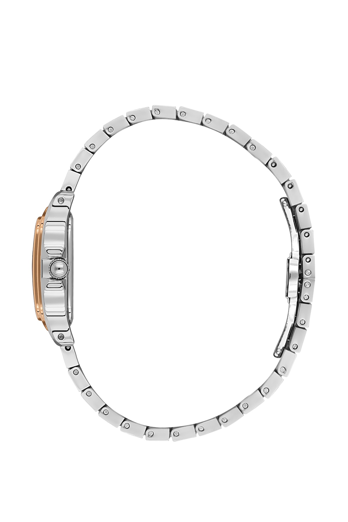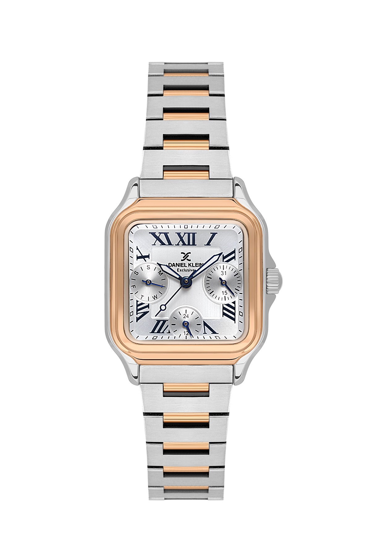 Часы имеют аккуратную квадратную форму корпуса размером 28,5х28,5 мм, выполненного из сплава Alloy. Комбинированный цвет корпуса гармонирует с браслетом, материалом для которого служит нержавеющая сталь. Серебряный цвет циферблата с выразительными римскими цифрами защищен прочным минеральным стеклом, устойчивым к появлению царапин.
